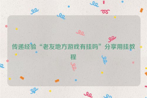 传递经验“老友地方游戏有挂吗”分享用挂教程